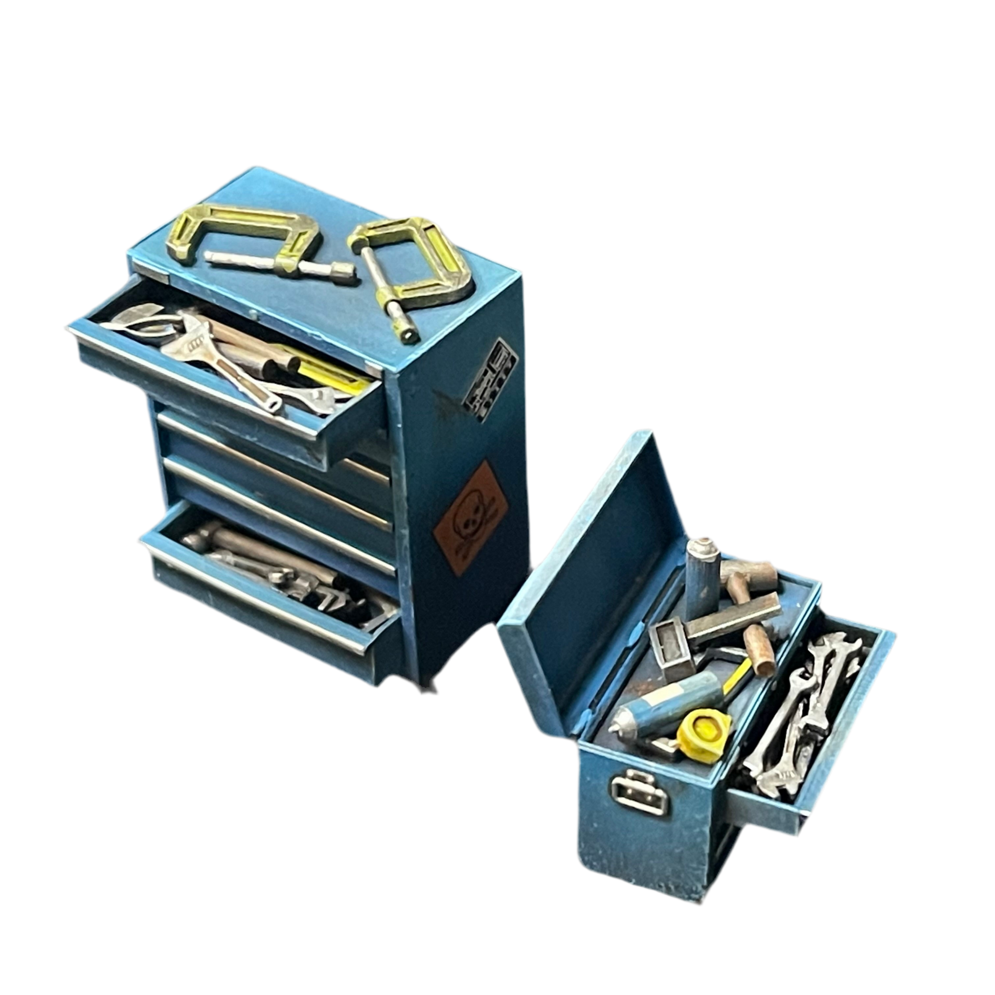 This 3D printed resin set includes a highly detailed, two-part tool chest with four removable drawers, and individual hand tools to customise your toolbox comes with casters for a realistic touch.